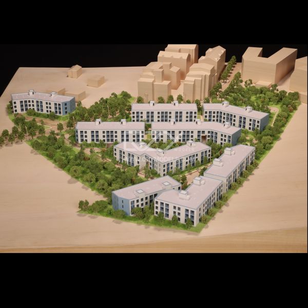 The design style adheres to the minimalist style, and the combination of log color and white is simple and elegant. The base with log color, relying on natural color and texture, creates a strong visual tension as if it can bring people into a real site environment; The white building model accurately restores the appearance and structure of the building and is realistic. The conceptual expression of the surrounding geometric blocks adds a sense of art and design to the whole. The combination of the two clearly and powerfully conveys the original design intention, allowing viewers to quickly understand the design concept of the building and space. The buildings in the model are arranged in order, and the surrounding green plants are appropriately dotted, which complement each other with the log - colored base, white buildings and geometric blocks. The whole is harmonious and full of visual impact, fully demonstrating the delicacy and care under the minimalist style. The short production cycle of only 25 days further highlights the professionalism and efficiency of the QZYMODELS production team.